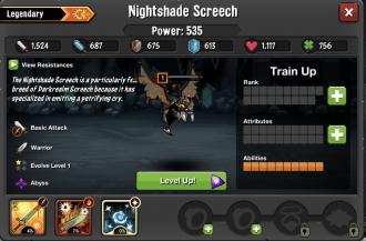 Nightshade Screech, abilities: Deep Slash, Fiery Cleave, Channel Mana
